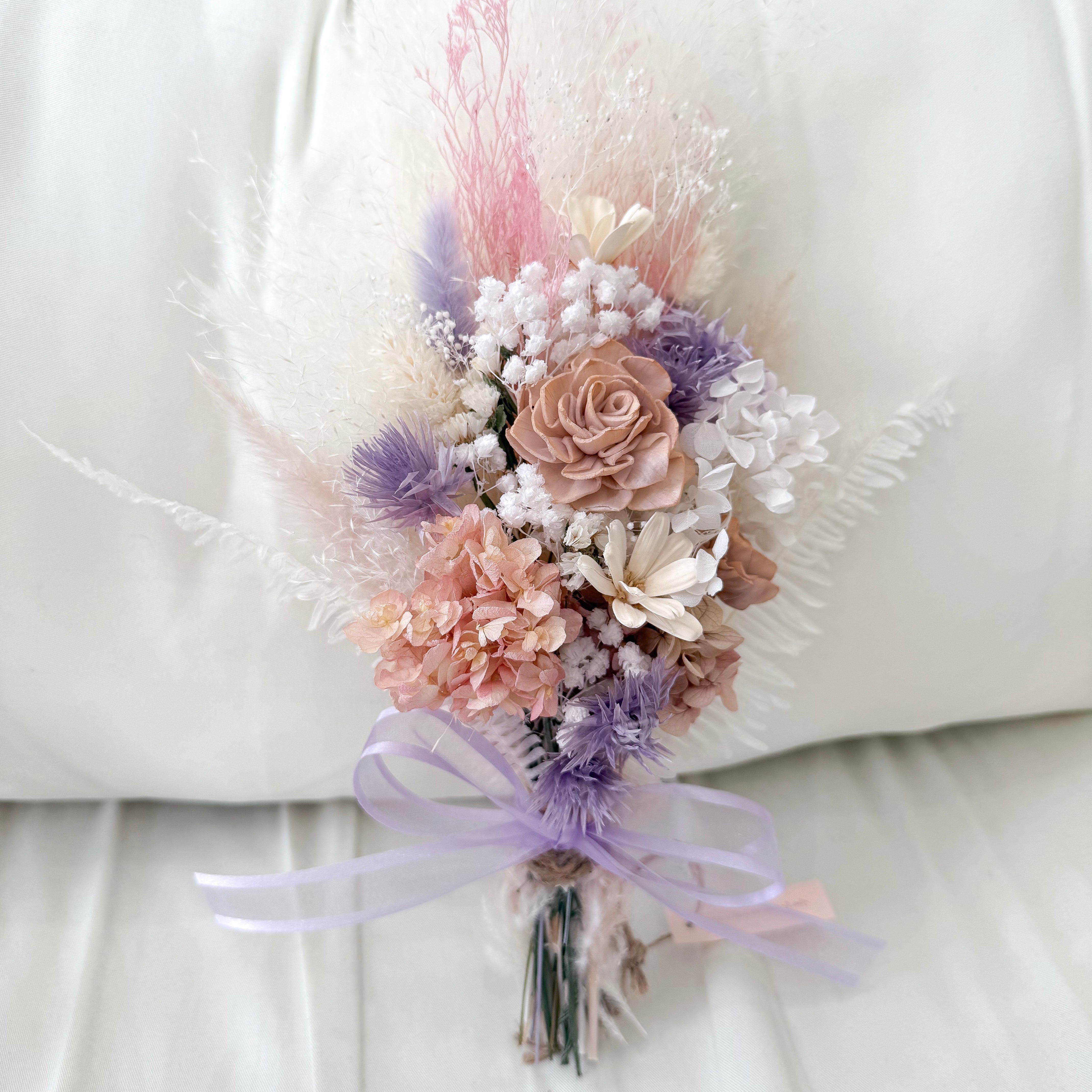 ドライフラワーならではの自然な色合いや、時間とともに変化していく表情もお楽しみください。