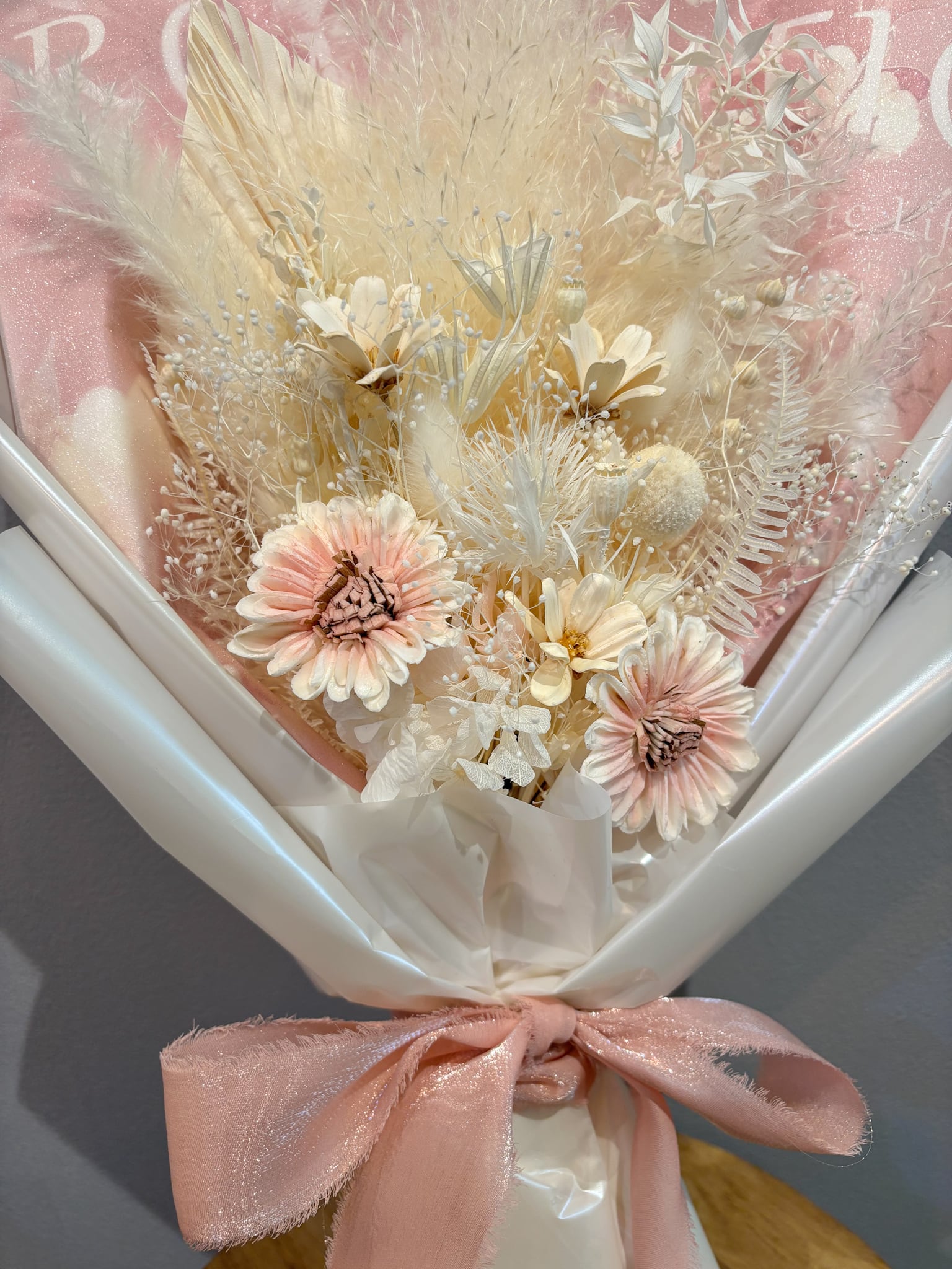 ドライフラワーブーケ ホワイト×ピンク | 上品・大人ギフト・ラッピング付き